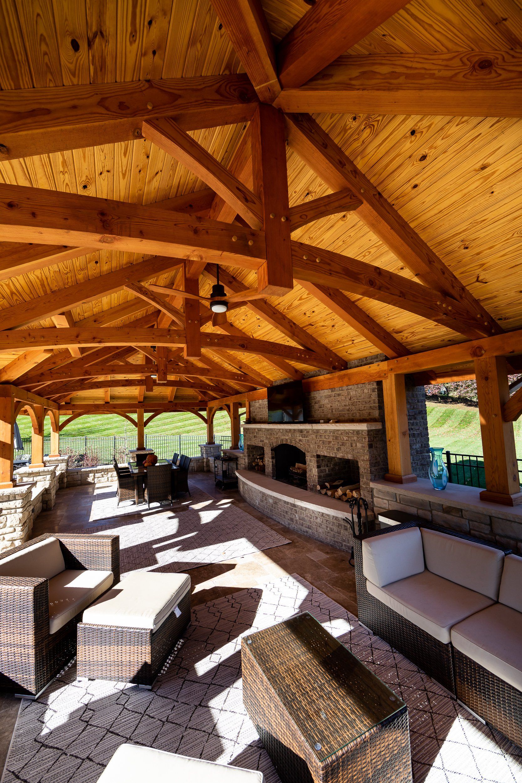 The outdoor timber frame pavilion is a custom handcrafted work of art yet it is quite functional in its ability to provide comfort and tranquility, shade from the sun's rays and protection from rainy weather.